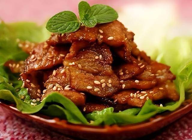做法:五花肉冷冻切片腌制,平底锅煎熟,撒芝麻,可搭配生菜叶食用。