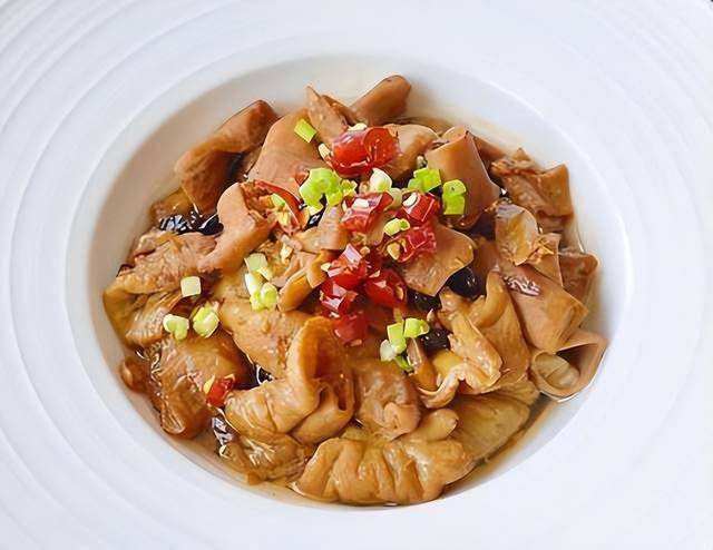 做法:猪大肠洗净煮熟切块,加调料腌制;蒸熟后撒葱花和小米椒,浇热油。
