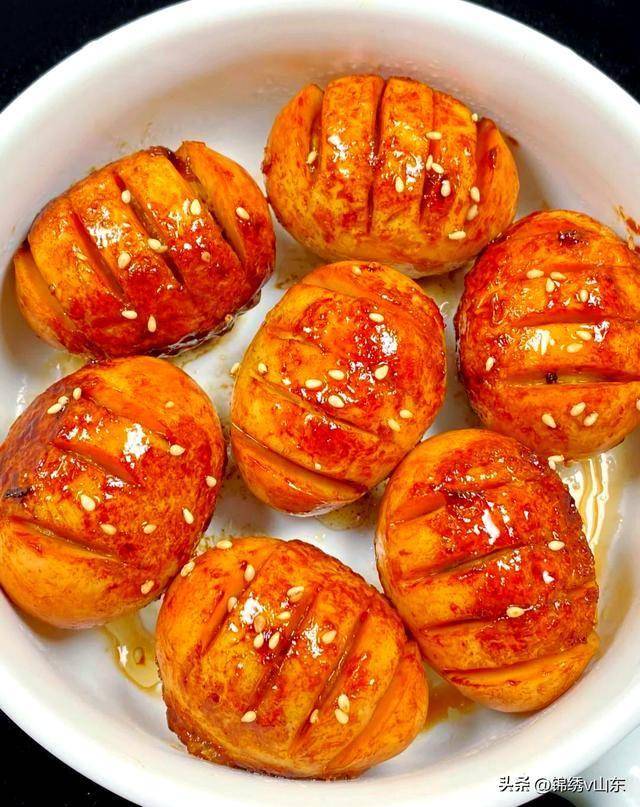 做法:白薯打熟碾成泥,加鸡蛋黄、牛奶和白糖拌匀,装入模具,放芝士,烤箱烤15分钟。
