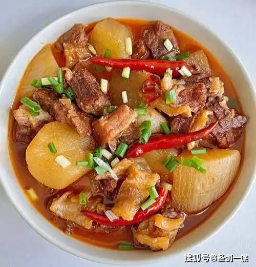 7. 放入切好的白萝卜块,继续炖20 - 30分钟,直到白萝卜熟透,最后加入盐调味,搅拌均匀即可。