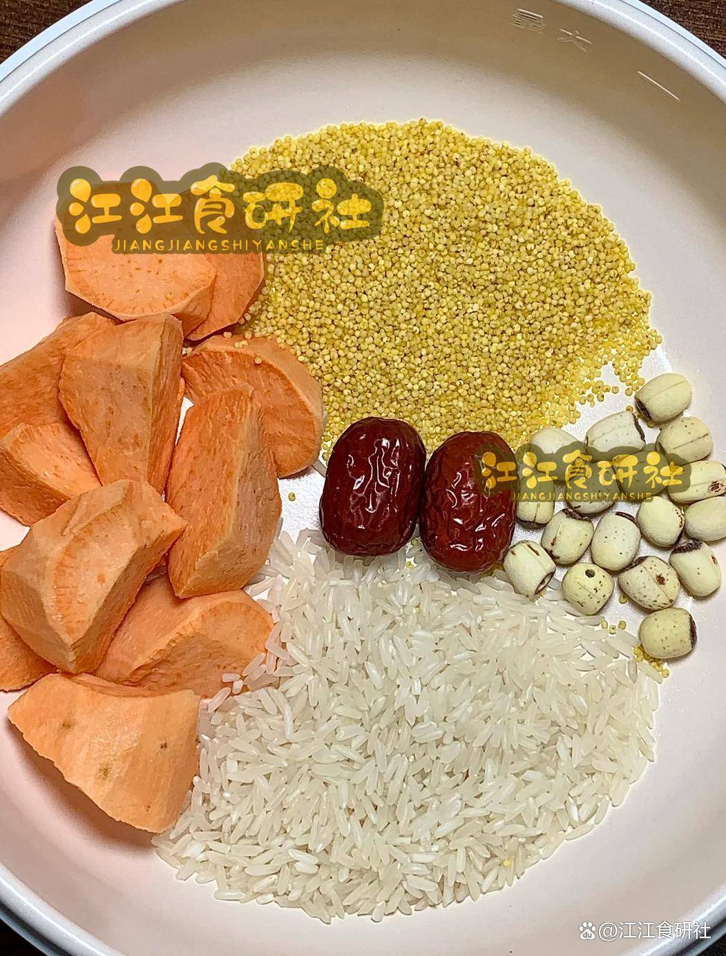 红薯是粗粮,富含膳食纤维,能促进肠胃蠕动。莲子有安神、健脾的作用,春天容易烦躁睡不好,吃点莲子有帮助。用大米和小米混合,口感比单用小米更滑,营养也更全面。
