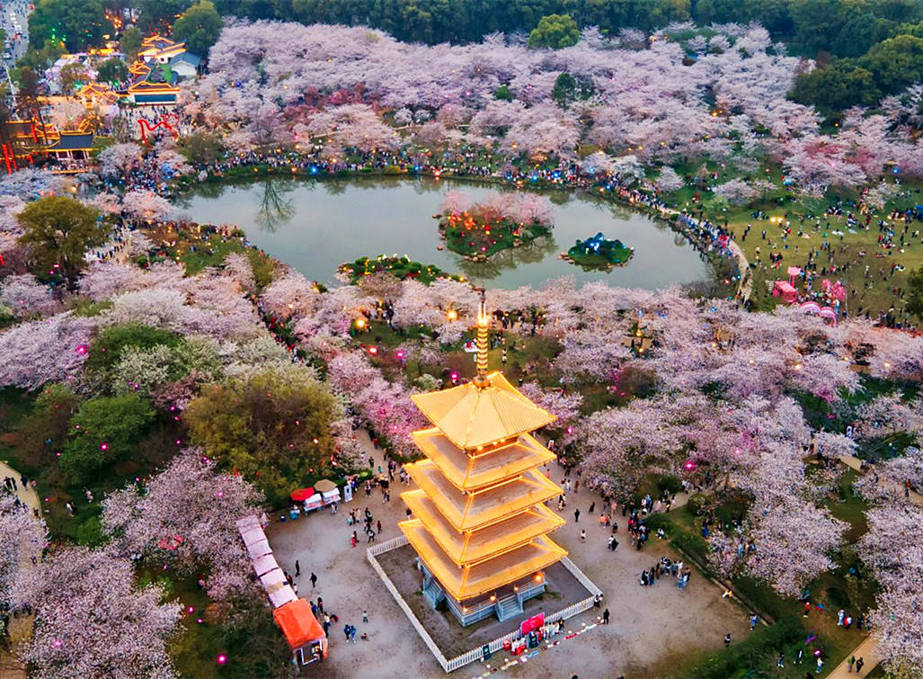 城乡协同:以花为媒推动融合发展;武汉赏花经济的“先锋队”在城市,而“主力军”在农村。通过“擦亮武大樱花游金字招牌把客人吸引来,拉长乡村赏花游产业链把客人留下来”的策略,武汉构建了城乡一体的“一核两园六区”赏花布局,将城市客流引向乡村,将赏花旅游与美丽乡村建设、乡村旅游发展进行有机融合,实现了“靓城兴乡”的多赢战略目标。品牌成果:从“花园城市”到“城市春光”第一城的的华丽转身;持续的耕耘使“新花城”成为武汉闪亮的城市名片。武汉连续多年位列全国赏樱热度榜首,被权威报告评为“中国‘城市春光’第一城”。