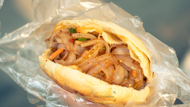 很多地方有的连锁店,可以就近选择,属于小吃。松软的蛋饼中夹各种自选馅料,还能双拼,非常人性化。