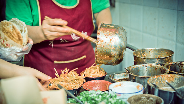 地铁文殊院K出口,离老远看到大长队准没错。这碳水夹碳水的组合真的我把震撼了!饼现烤、菜现拌,锅盔嘎嘣脆,牙齿一碰就酥掉渣,然后是软糯香辣的凉粉一股脑袭来。巴适得很~