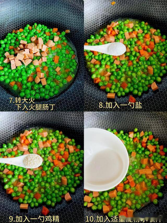 豌豆火腿胡萝卜这道菜,豌豆口感清甜,富含蛋白质等营养物质,此时食用既能满足味蕾,又对健康有益。