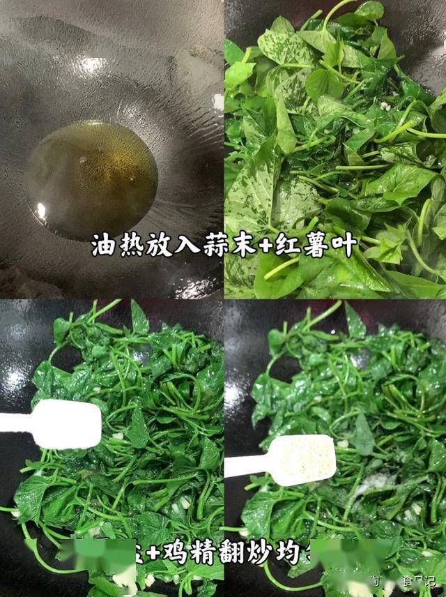 可做清炒红薯叶,红薯叶富含多种维生素和膳食纤维,具有养肝、润肠等功效,在谷雨时节食用正当时。