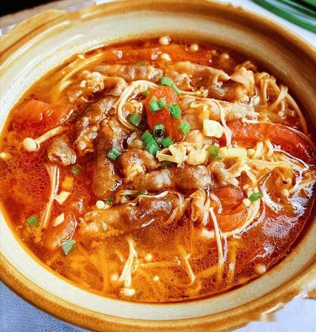 肥牛卷400g、番茄3个(熟透的)、金针菇200g、蒜末、葱花、生抽1勺、蚝油1勺、白糖半勺、盐少许、番茄酱1勺(可选)