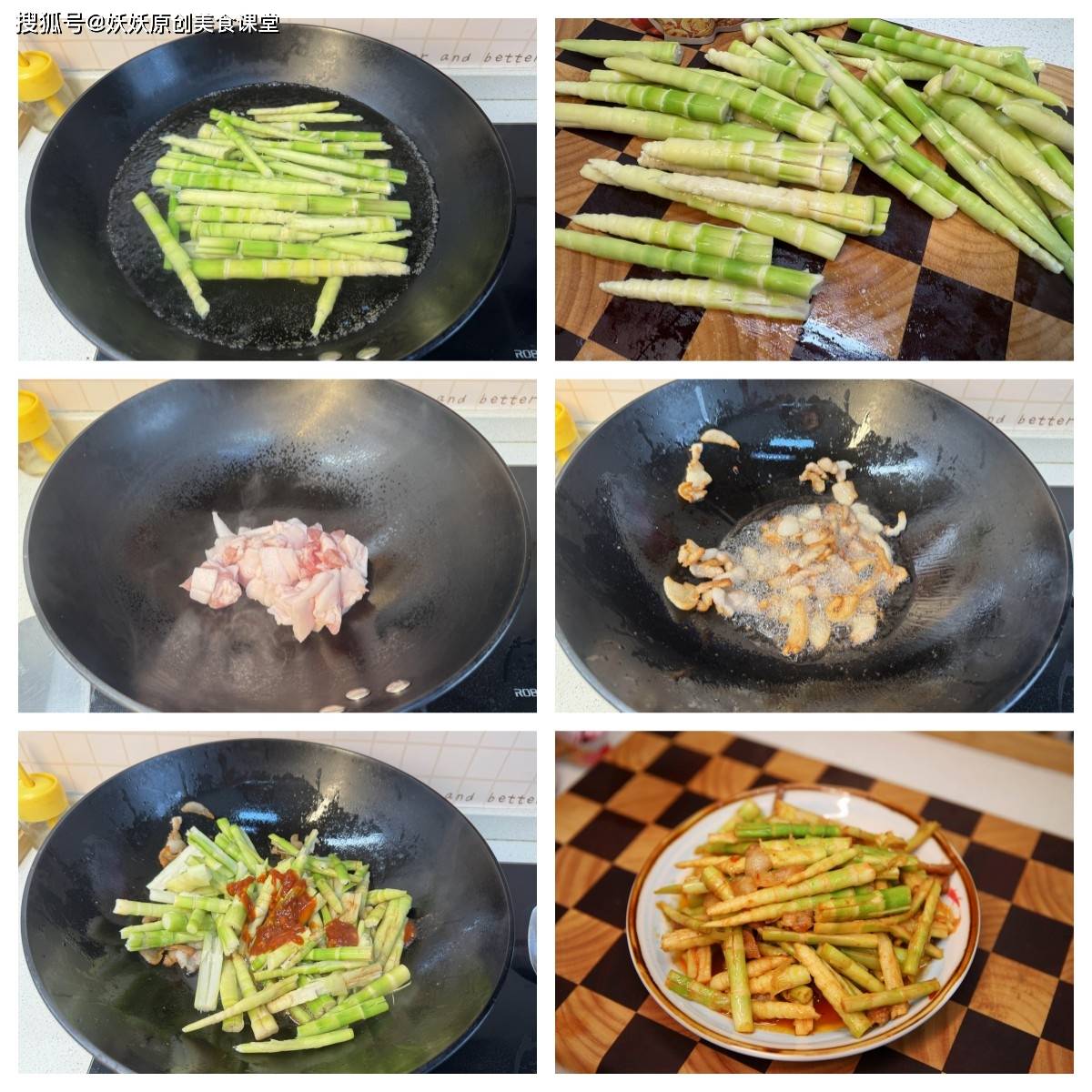 猪肉的用量不要多,一小块用来炒出猪油即可,然后下入小竹笋,来上一勺蒜蓉辣酱,或者直接用蒜蓉,蚝油生抽来代替,再来适量盐提味即可,鲜香美味。