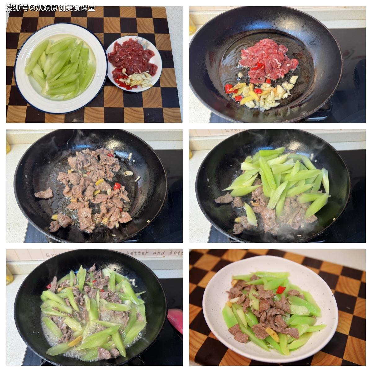 油锅烧热后先把牛肉和姜蒜小米辣一起炒香,然后倒入莴笋炒熟,可以加少许清水焖一下,用少许盐调味即可,莴笋是可以生食的蔬菜,不用煮很久。