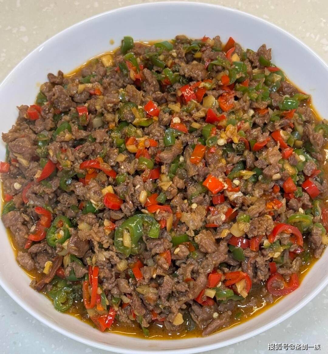 2. 热锅凉油,放入肉末煸炒至变色,加入豆瓣酱炒出红油。