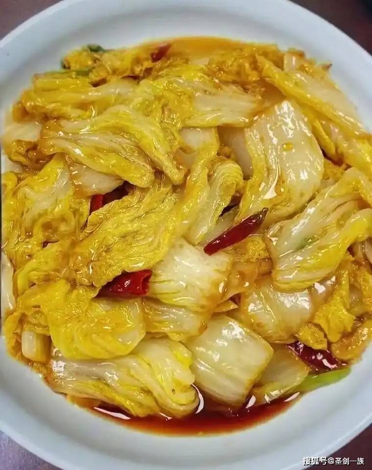 7. 大火快速翻炒均匀,看到白菜叶变软即可出锅,保持脆爽口感。