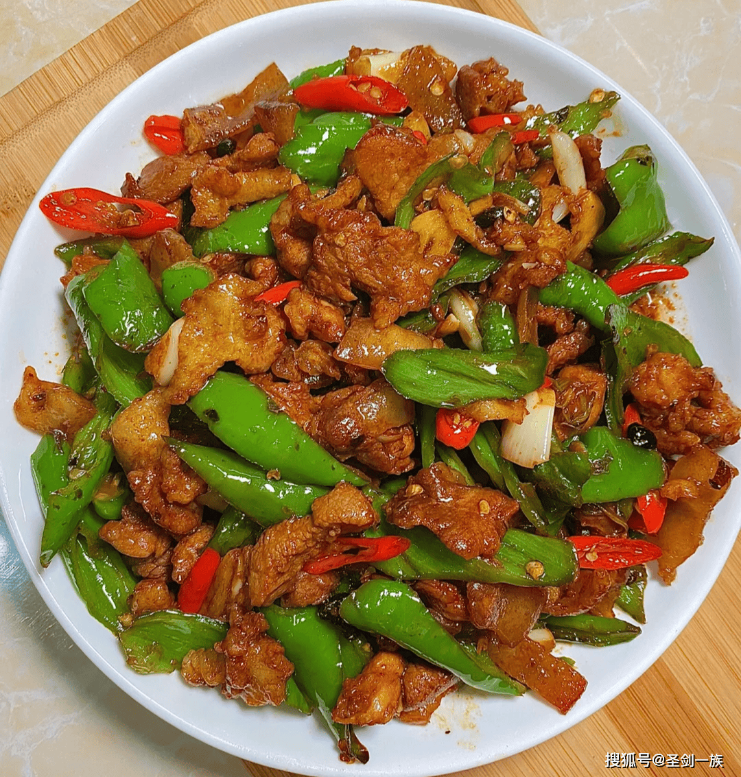 食材:猪肉200克、尖辣椒2个、葱1段、姜1块、蒜3瓣、料酒1勺、生抽2勺、盐适量、油适量。