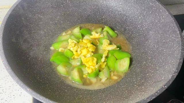 划重点:鸡蛋别炒太老,炒到定型就盛出来,不然再回锅和丝瓜一起炒,就会发柴,影响口感。