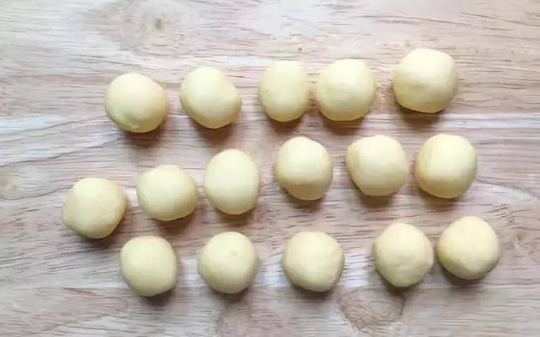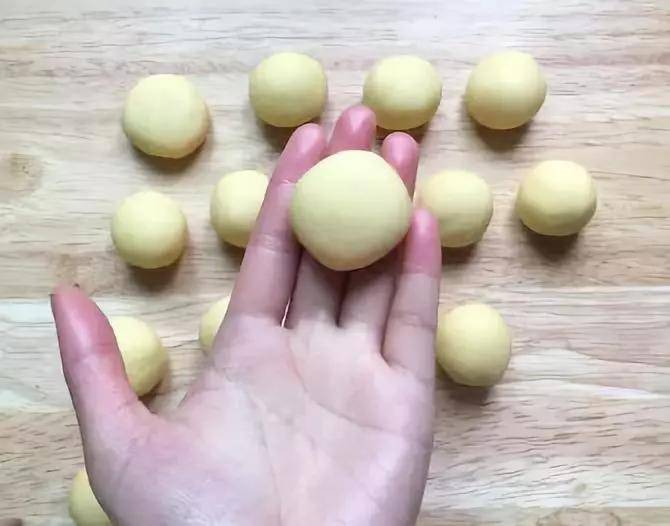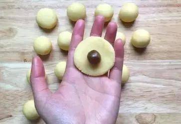 5、然后包好搓圆,接着再用手掌轻轻压扁,剩下的依次操作,此时烤箱预热168度上下火。