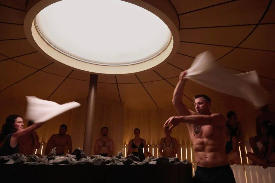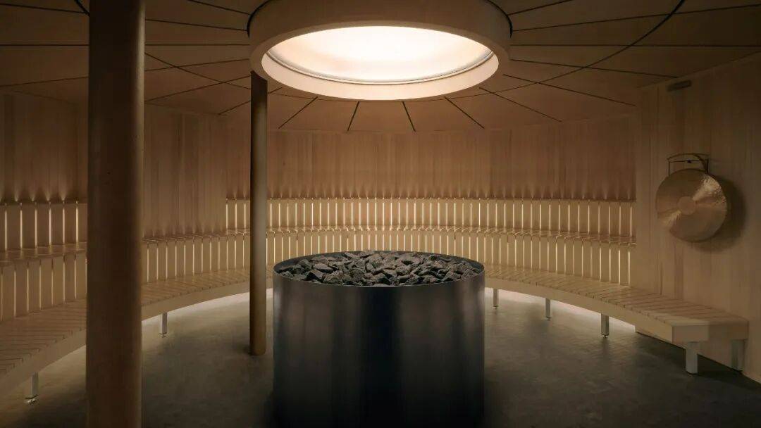材料选择与空间条件密切相关,桑拿与蒸汽浴区域使用耐高温、高湿度的天然石材及矿物材料,保证长期使用稳定性;干热区域与部分过渡空间采用木材,适应不同温度条件下的触感需求,材料根据功能属性和环境要求配置,而非装饰性使用。