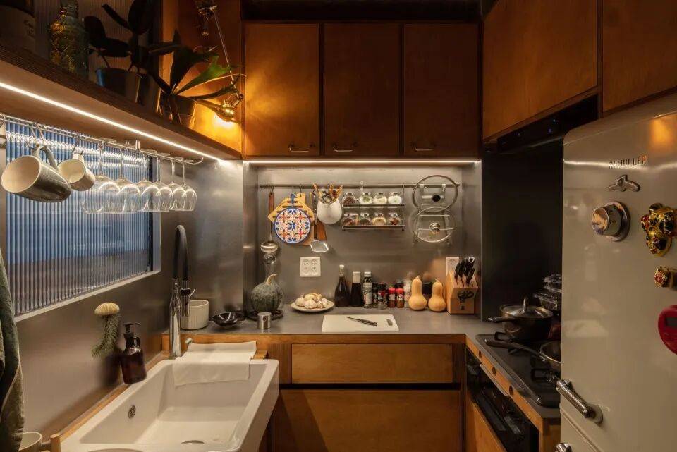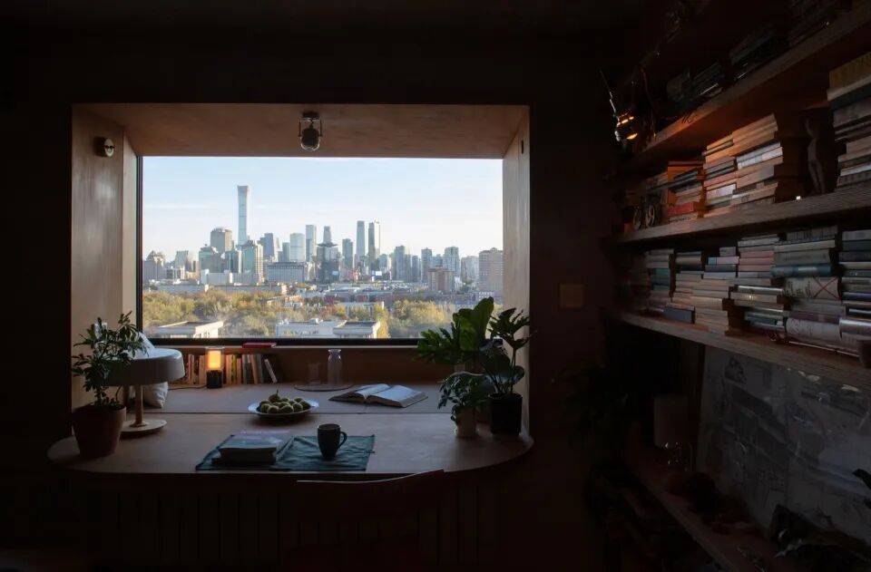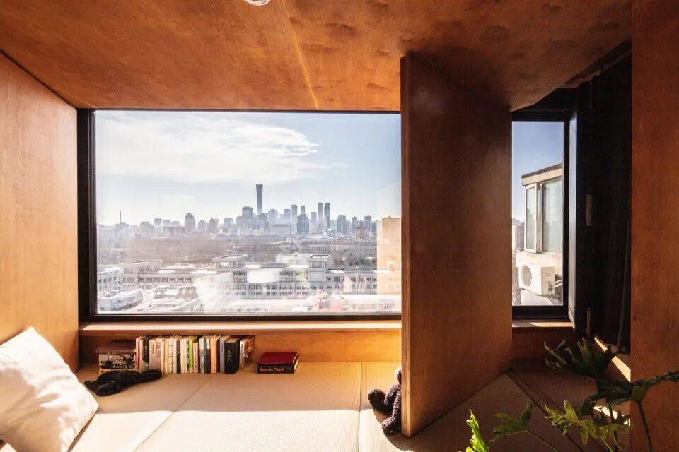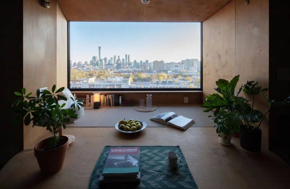 ‌“洞穴”作为精神隐喻‌:受加斯东·巴什拉《空间诗学》启发,设计将狭小户型转化为“山顶的洞穴”,象征亲密、安全与内省。南向阳台被改造为无框玻璃“洞口”,如望远镜般延伸视线,实现对城市的“观望”。