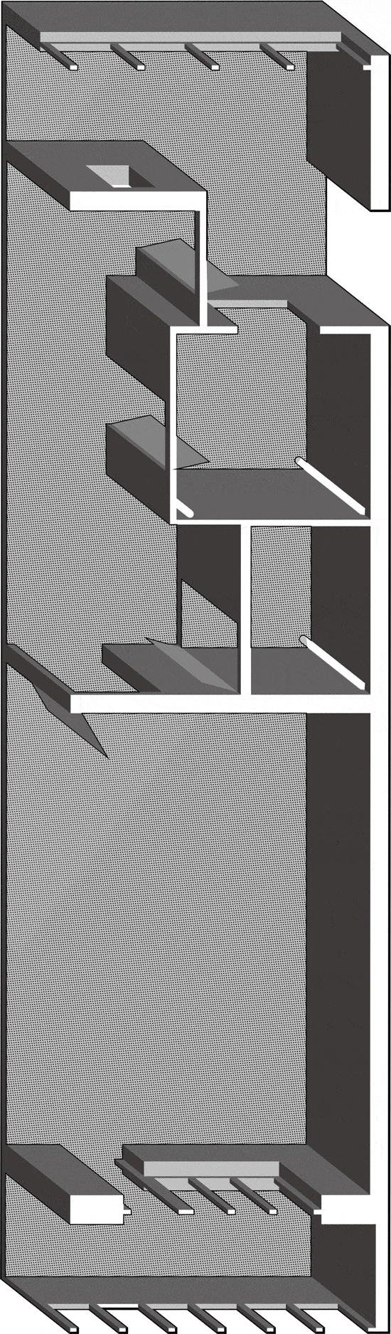 人们对洞穴空间的感受,据说来自对子宫的记忆。加斯东.巴什拉(Gaston Bachelard)在其著作《空间诗学》中提到,洞穴往往象征亲密,庇护和安全。这些城市中的高密度住宅,当我们忽略邻里空间所包含的内容,把整幢大楼想象成一个巨大的外部实体。那么,似乎大山和大楼没有两样。“洞穴”身处一个巨大实体当中。