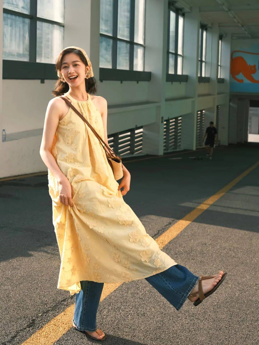 白色,能够让繁忙的生活变得慢下来,让穿搭更具呼吸,宽松的裙摆+无袖款式,超有氧气感,戴顶草帽,背款斜挎包,轻松凹造型。