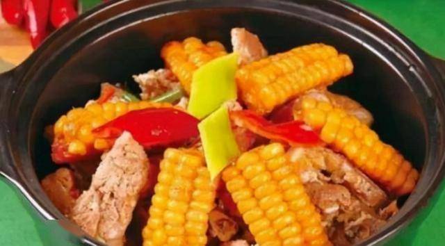 4、倒入清水,大火烧开,放入盐、生抽、蚝油、少许酱油调色,倒入玉米,小火闷煮30分钟。