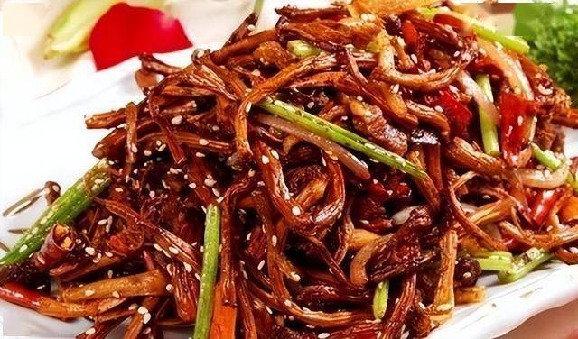 5.继续煸炒至茶树菇收汁,全部吸入到茶树菇内盛出即可。