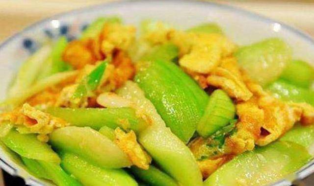3、猛火将炒锅加热入油,待油温升高,倒入丝瓜炒熟,加入已熟鸡蛋同炒。