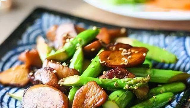 先下人豆角炒熟,再下藕丁,中间烹入料酒。