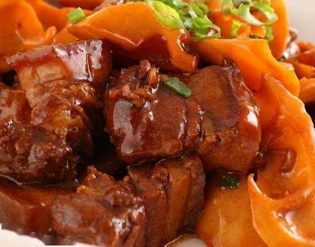 材料:五花肉,春笋,白果,绍酒,姜,酱油,白糖
