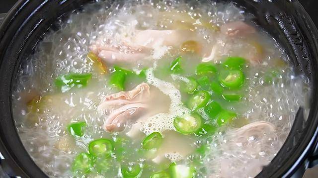 6、20分钟后猪肚汤就可以喝了,汤汁成奶白色,猪肚颜色漂亮,咬一口猪肚软烂鲜香,能吃辣的可以加一点青辣椒,再加上一点食盐,大火煮2分钟即可。这个做法也很美味,喜欢的可以试一下。