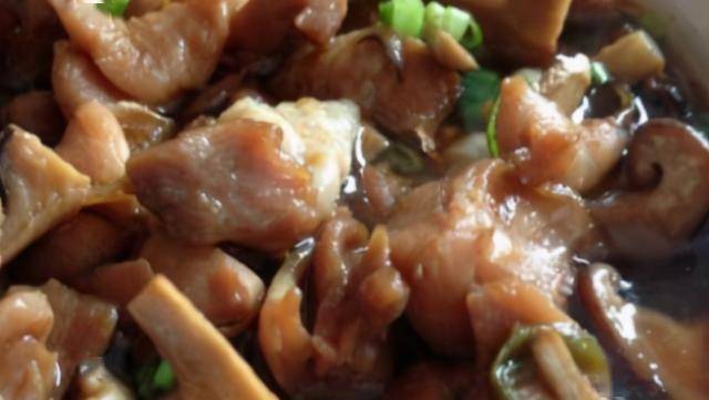 炖煮鸡肉:加入鸡块翻炒至变色,加生抽、老抽、盐调味,加水炖煮10分钟;
