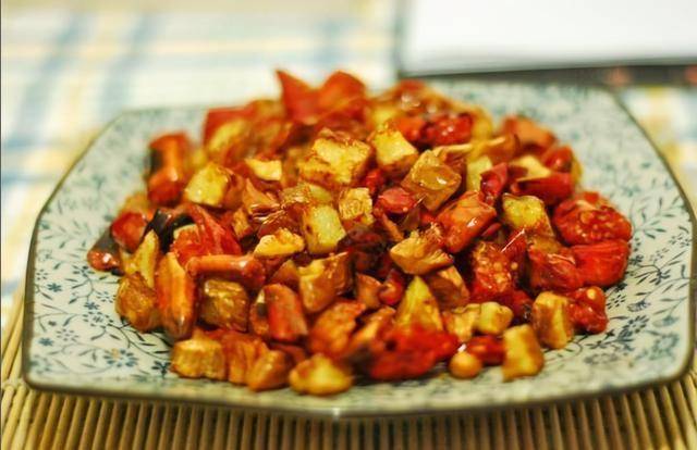 炸鸡丁:油温七成热放入鸡丁,炸至表面金黄捞出;