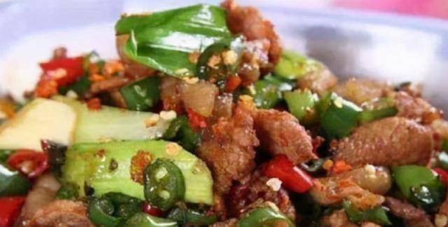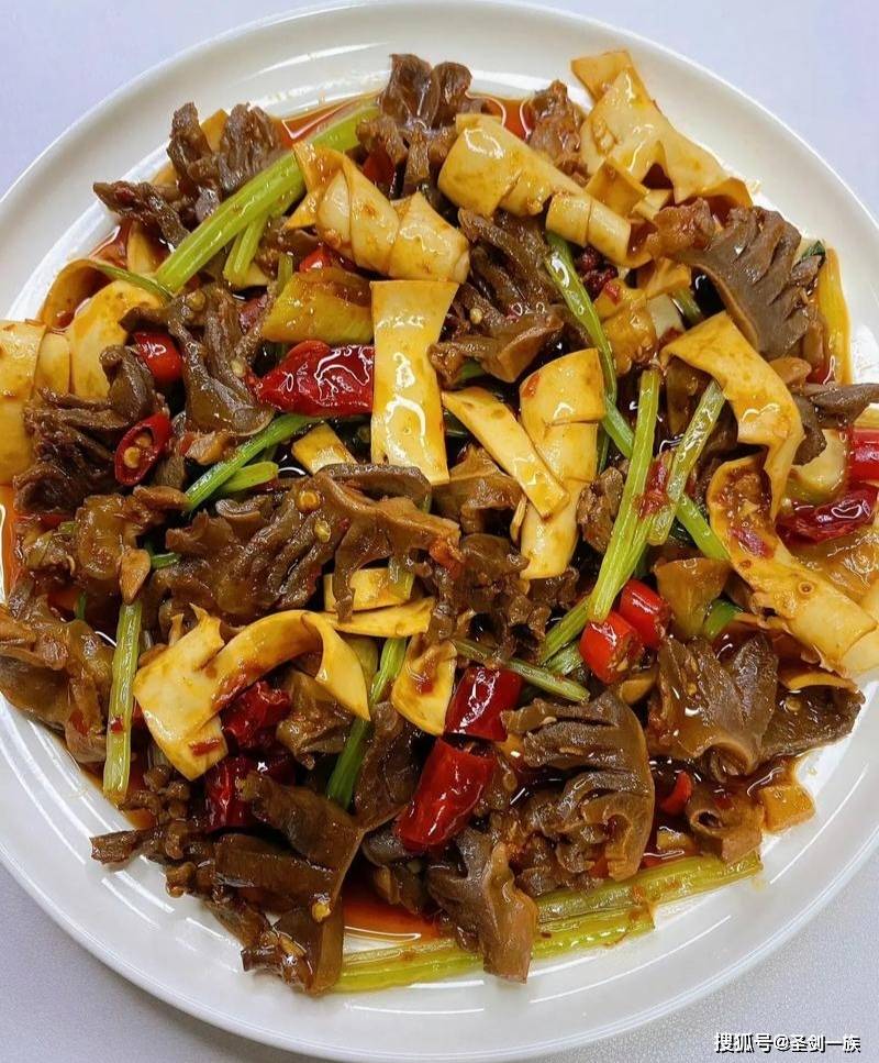 要点:鸡胗和黄喉分别处理后,大火快炒,加入豆瓣酱和其他调料。