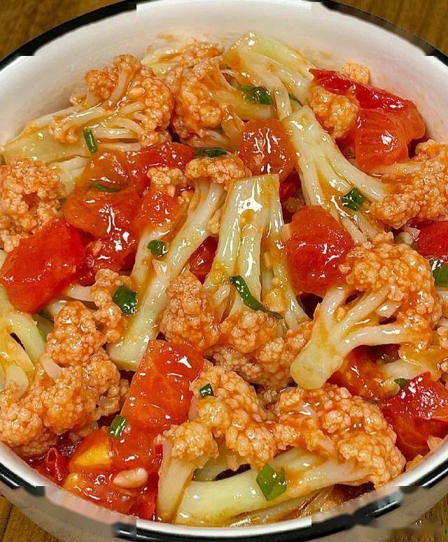 所需食材: 菜花1颗(约400克)、番茄2个(约300克)、大蒜4瓣、番茄酱1勺、生抽1勺、白糖1小勺、盐适量、食用油适量、葱花少许、水淀粉少许