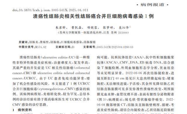[1]溃疡性结肠炎相关性结肠癌合并巨细胞病毒感染1例 朱濛昕, 曹凯磊, 项镜蓉, 张梦婷, 奚沁华 临床消化病杂志 2025-08-07