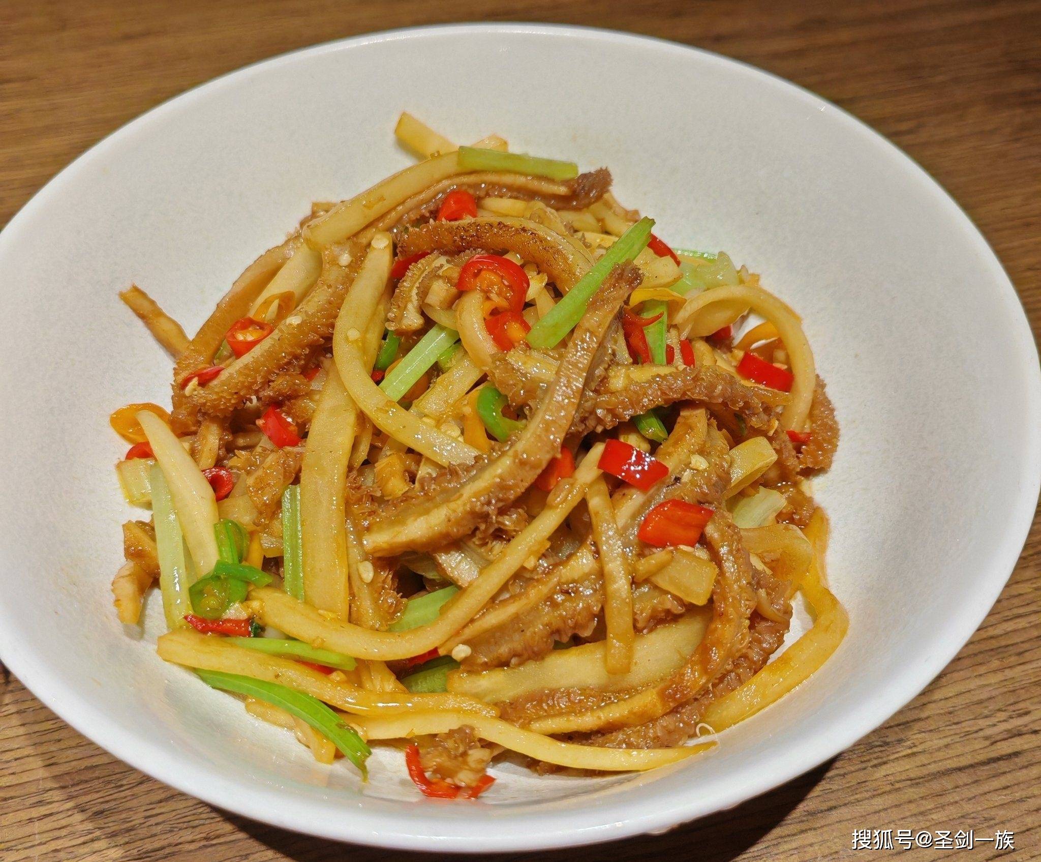 5. 酸萝卜炒牛肚:牛肚的嚼劲与酸萝卜的爽脆相结合,酸辣开胃,是下饭的好选择。