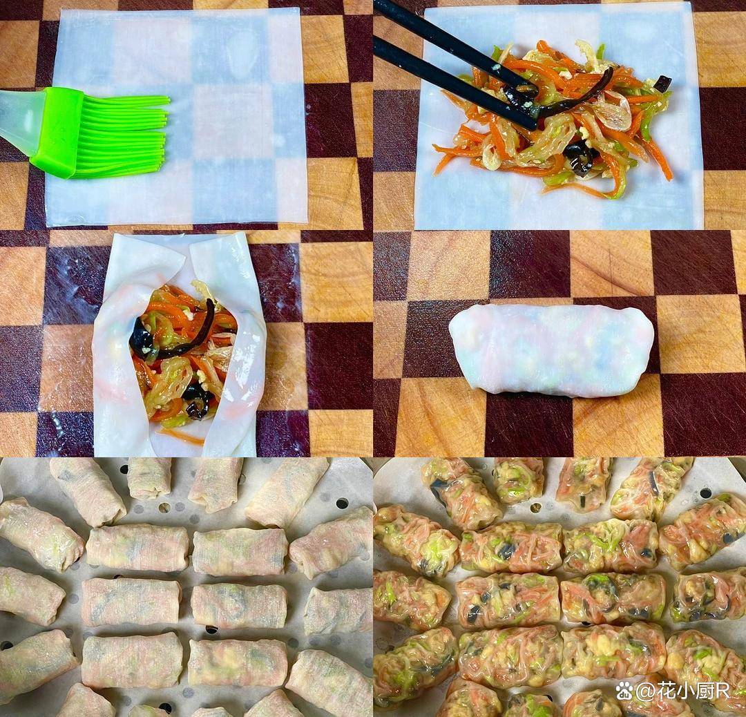 ✅ 亮点:春天尝鲜,我迷上了这口蔬菜卷。西葫芦脆嫩、胡萝卜清甜,配上木耳的弹滑、鸡蛋的软香,再加一把虾皮提鲜,用馄饨片一裹,蒸出来皮薄馅亮。低脂高钙,膳食纤维满满,咬下去满嘴都是春天的清爽,比肉馅更讨喜。