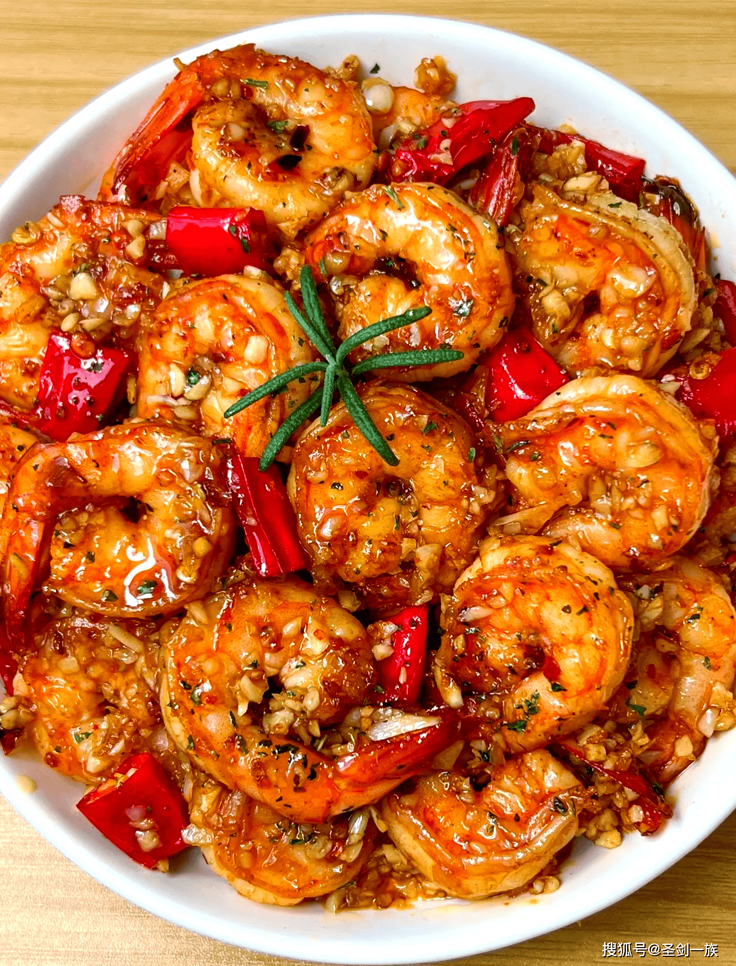 2、锅烧油,把虾煎至金黄酥脆,加姜丝蒜末炒香。