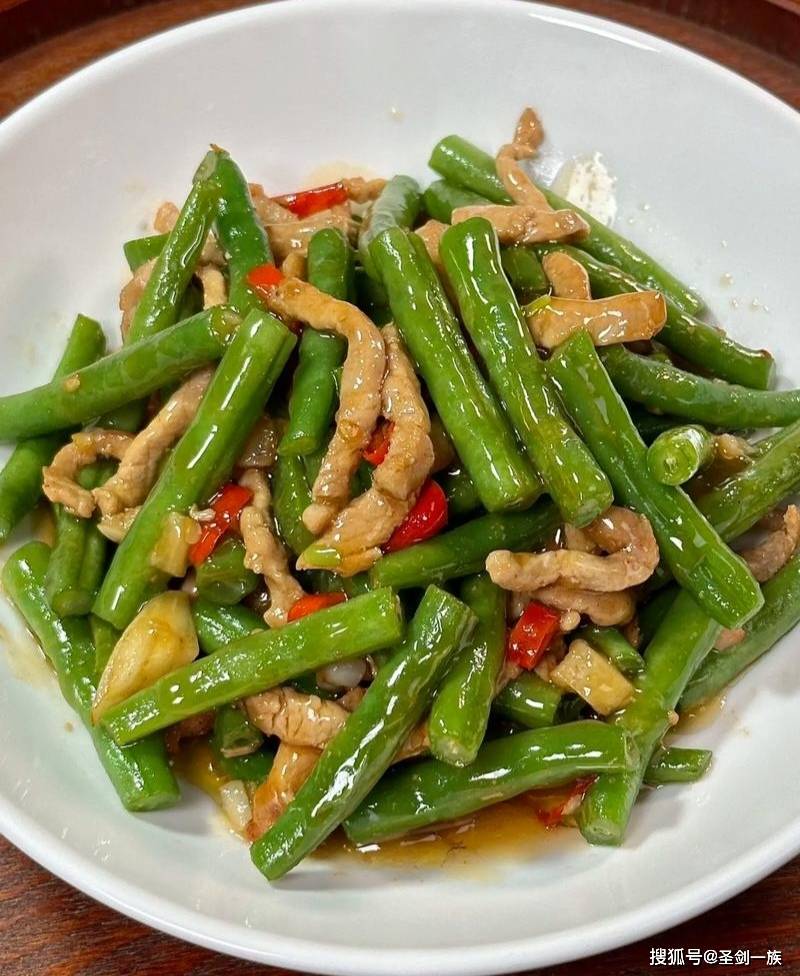 所需食材:四季豆300克、猪瘦肉200克、大蒜3瓣、干辣椒3个、生抽2勺、料酒1勺、盐适量、白糖少许、食用油适量。