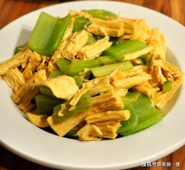 7. 出锅前淋入少许香油增香,翻炒均匀即可出锅,腐竹软嫩、芹菜脆爽,口感丰富。