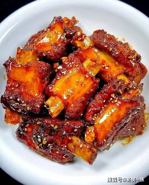 1. 排骨冷水下锅,加姜片、料酒焯水,撇去浮沫后捞出洗净。