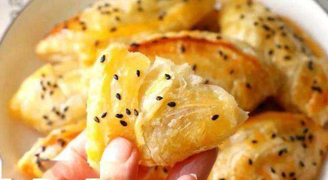 5.、对折捏紧。如果怕烤盘会粘,可以垫上一层油纸