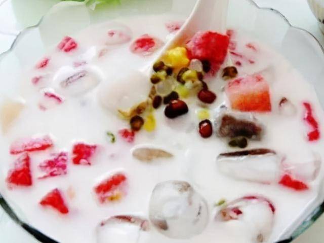 材 料:主料:椰子、绿豆、空心粉、薏米、冬瓜意、椰奶、牛奶、红枣、冰块