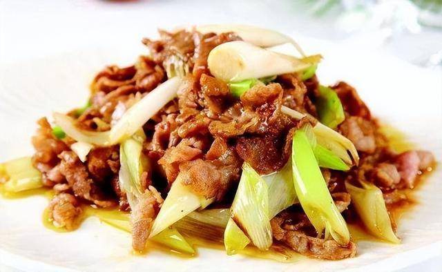 食材:梅花肉100克、大葱2根、食盐1小勺、酱油1大勺、料酒1小勺、淀粉1/2小勺、植物油3大勺