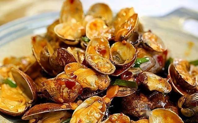 2、锅里热油下蒜蓉炒5秒,紧接着下 蚝油+辣椒酱+葱跟蒜蓉搅拌一下后马上把花甲倒进去翻炒均匀即可上碟(这个步骤要手脚快,不要翻炒太久,花甲一均匀裹上酱汁就马上起锅,不然蚝油是会越炒越糊锅的)。