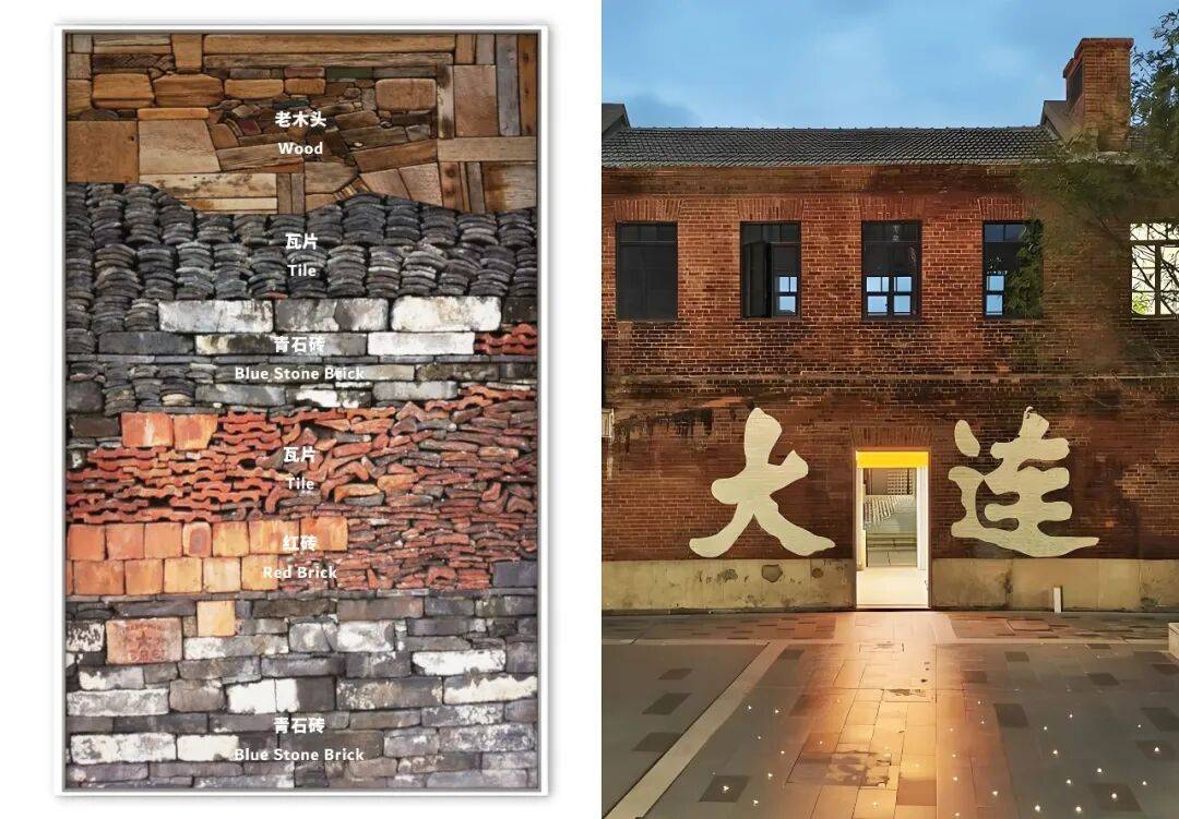 1. 品牌与文化融合:项目将品牌特质与大连当地文化深度融合,大量运用当地自然材质,把产品户外元素体现在细节中。例如,入口一侧展示品牌历史及产品理念的背板,由大连本地建筑材料砖、瓦叠置组成,将百年历史的街巷与品牌宣传相结合,延续并加深了品牌认知,同时置入了大连滨海文化和人文风情,打造出城市宣传名片。