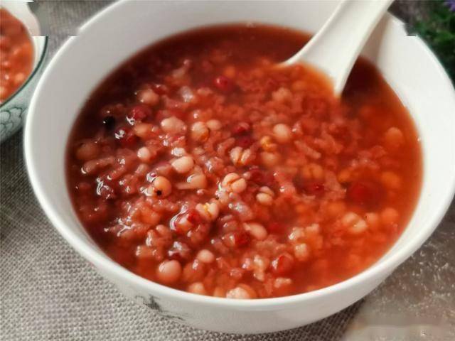 【红豆薏米粥】所需材料:薏米、红小豆、大米、水、
