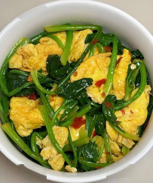 1. 菠菜洗净切段,焯水备用;鸡蛋打散,加入少许盐搅拌均匀。