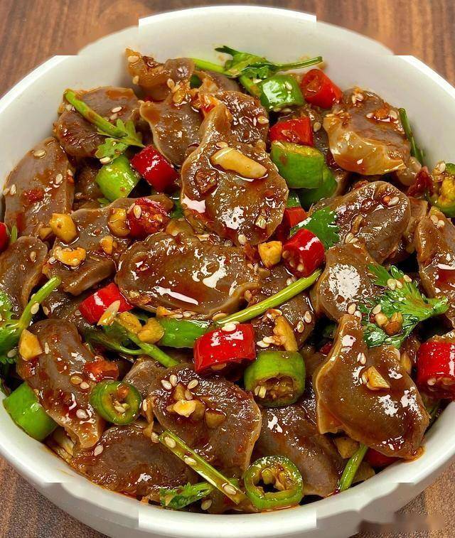 1. 鸭胗切片,冷水下锅加葱姜、料酒、生抽、老抽,煮 10 分钟后捞出沥干。
