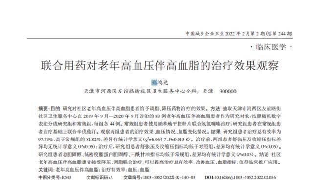 [1]郑鸿达.联合用药对老年高血压伴高血脂的治疗效果观察,中国城乡企业卫生,2022-2