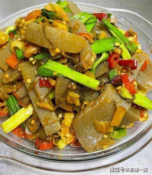 小贴士:魔芋先焯水去除腥味,炒制时加入辣椒和蒜片增加香气。