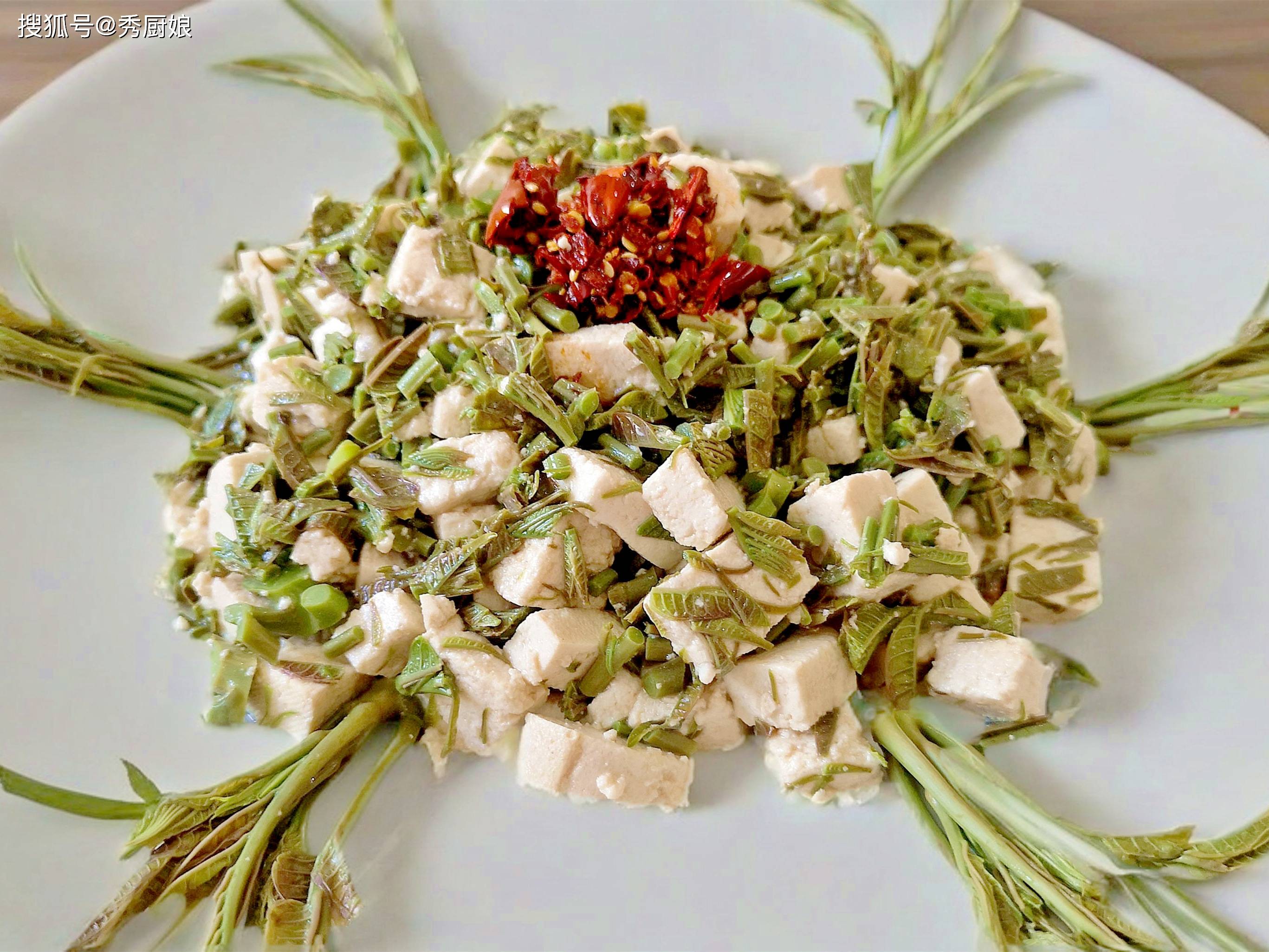 做法我偏爱最简单的——香椿拌豆腐。